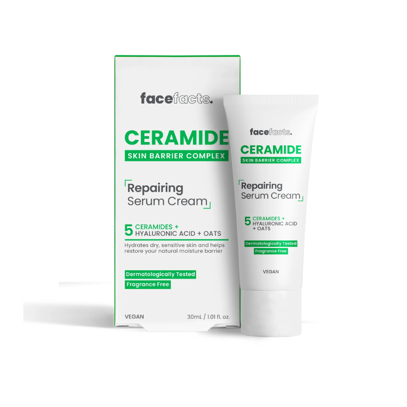 DESCRIPTIONBe kind to your skin with our very light and fast-absorbing face serum, ideal for dry and sensitive skin. Formulated with our skin barrier complex of 5 Ceramides, moisture-locking Hyaluronic Acid, soothing, Oats, Glycerin and Vitamin E, our serum is designed to support, protect and replenish the skin barrier. Apply daily for optimal hydration, balance and skin health. Give your skin the extra care it deserves! Vegan Friendly & Fragrance Free.